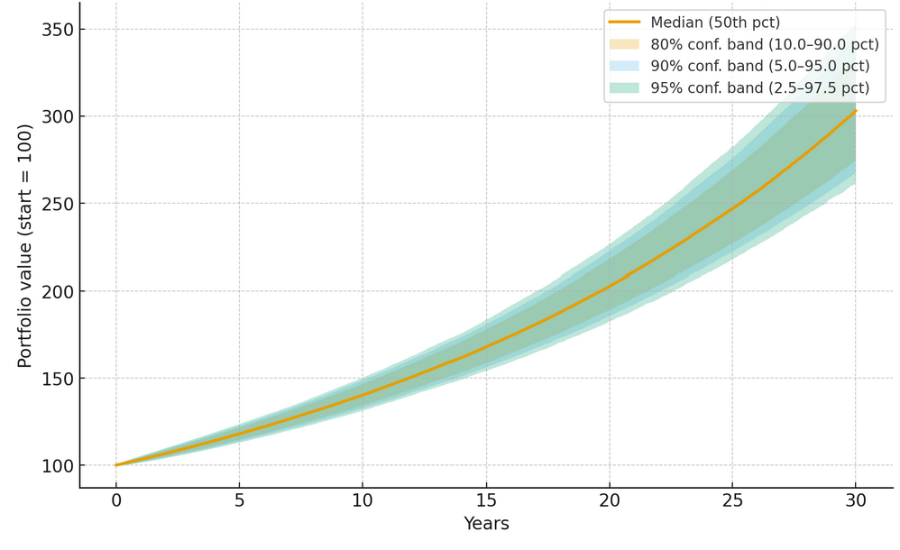 In sintesi, il cono di Ibbotson traduce concetti statistici e probabilistici in un’immagine semplice da interpretare, offrendo all’investitore un quadro chiaro delle possibili traiettorie che il proprio investimento potrebbe seguire.