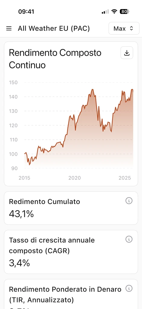 Un portafoglio con CAGR elevato indica un forte incremento del capitale nel lungo termine, condizione ideale per obiettivi di crescita patrimoniale. Tuttavia, un alto rendimento da solo non basta: va sempre messo in relazione al rischio sostenuto per ottenerlo.