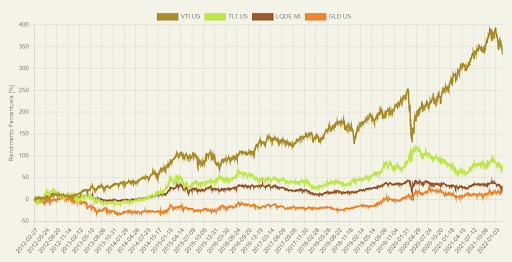 How much would I have made in 10 years investing € 10000 on an equally-weighted portfolio consisting of the major asset classes?