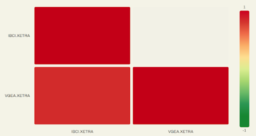 From the chart above, one can see how in periods of high inflation the two instruments are almost inversely correlated with each other. In general, however, one can see from the correlation matrix below how the correlation of the two bond instruments predominates: 0.63.