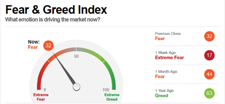 The Fear Greed Index, or Fear Greed Index, is an indicator developed by CNN Money that seeks to measure US stock market sentiment. The index is made up of seven different indicators, including market volatility, change in stock prices, money inflow into the economy, change in the ratio of rising to falling stocks, and other related factors. The index provides a score between 0 and 100, where a score of 0 indicates maximum market fear and a score of 100 indicates maximum market greed.