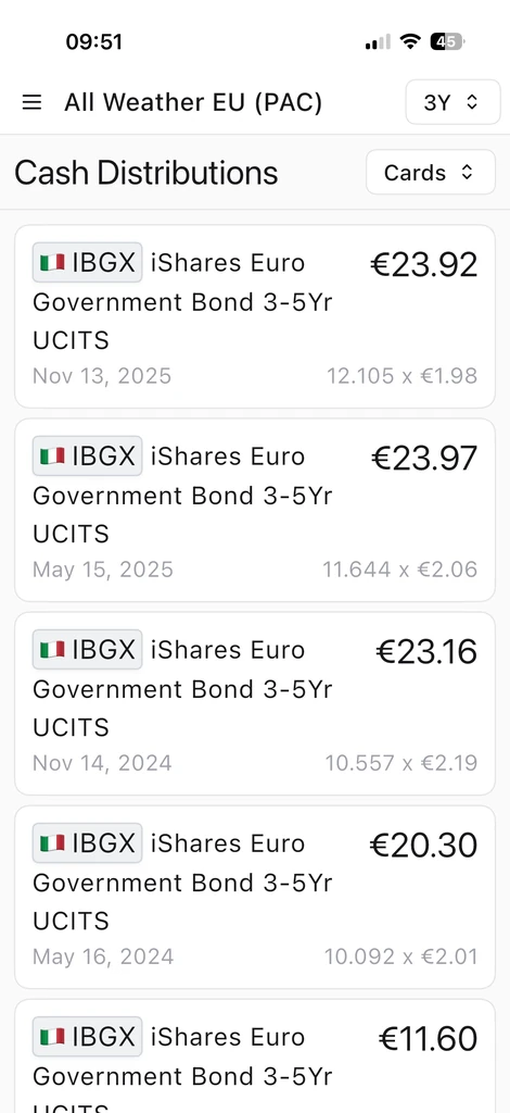Dieser Bereich zeigt Dividenden und Cash‑Ausschüttungen, die das Portfolio generiert. Er hilft zu verstehen, wie viel der Rendite aus periodischen Flüssen stammt.