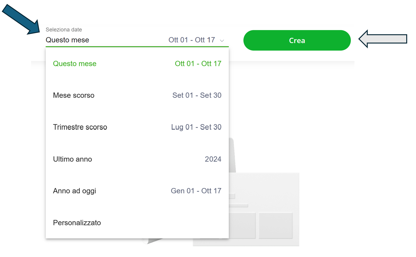 🇮🇹 Posta → Operazioni → Inserimento “Data Inizio” e “Data Fine” → Esporta → File separato da virgole (CSV)